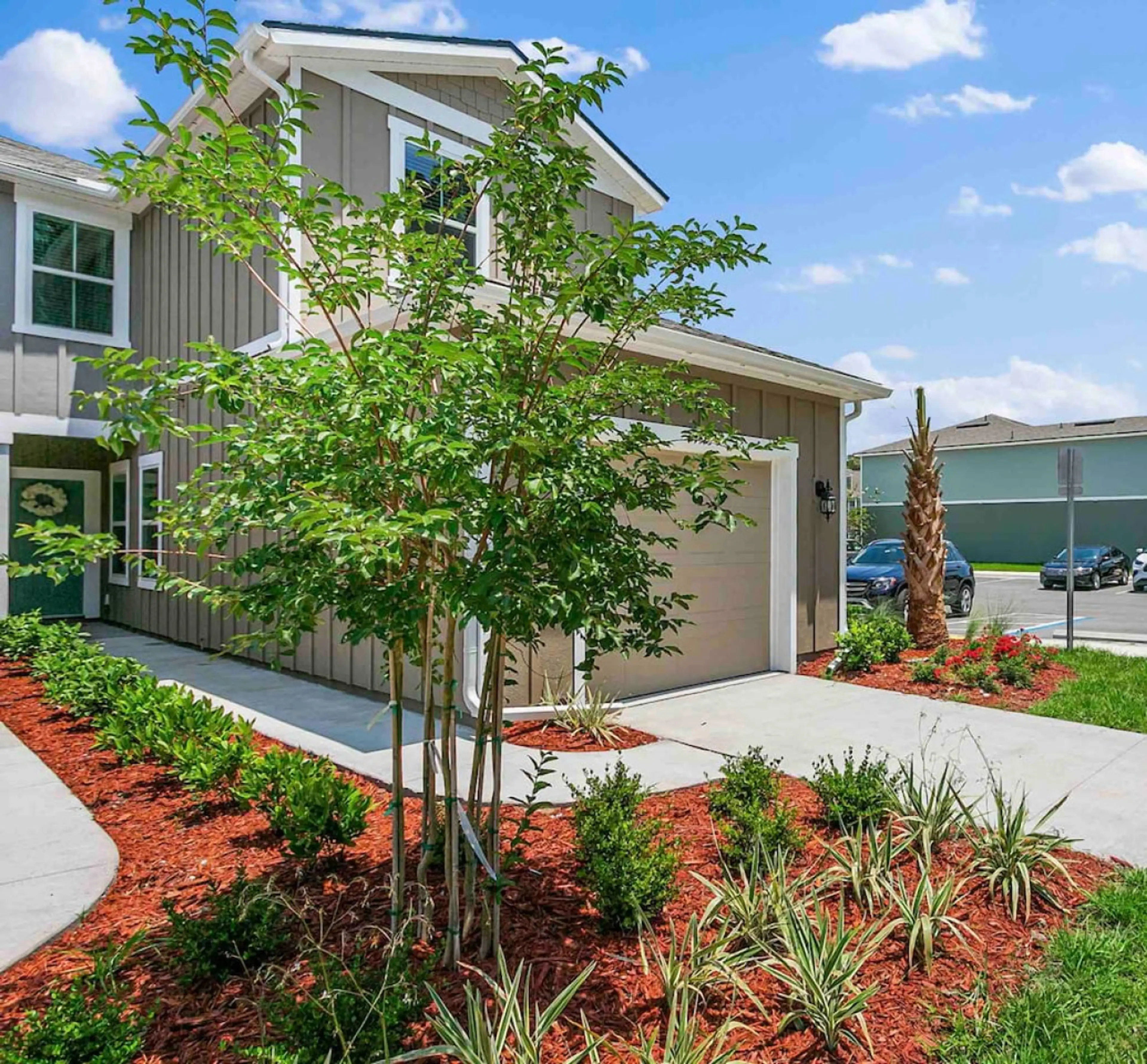 Have fun and relax at this stylish home. New construction townhome within a residential neighborhood. With 2 spacious bedrooms & 4 beds in total, we can accommodate groups comfortably. Enjoy high-speed wifi and smart tvs for your streaming needs. The community features 2 children’s playgrounds , t...